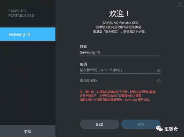 新的三星移動固態(tài)硬盤軟件除了可以讓用戶設(shè)置加密密碼,全新的固件與軟件升級功能有助于維持設(shè)備穩(wěn)定性,還可以通知用戶固件和軟件(三星移動固態(tài)硬盤軟件)更新,以達(dá)到穩(wěn)定且充分使用。用戶可以選擇開啟軟件自動更新通知,非常實(shí)用。